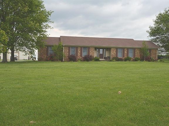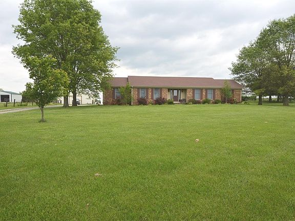 Nice 3 bedroom 2 bath brick ranch located in Burgin with 5 acres, living room and formal dining room. Plus up to date kitchen with tiled flooring, granite counters and stainless appliances. Beautiful hardwood throughout with carpeted bedrooms. Also a 36 x 46 metal building with stalls complete this property.