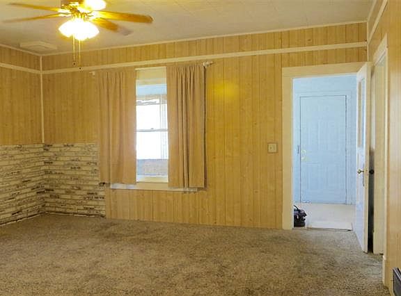 Corner lot, chain link fencing, garage, and enclosed front porch.