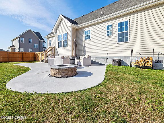 Don't miss this FANTASTIC home on 2 acres in Camden County, with NO HOA! This ranch-styled home has 3 bedrooms and 2 baths on the first floor, and a large finished room above the garage, that can be used as a 4th bedroom, studio, bonus room, or whatever you desire! Built in 2018, this house has gorgeous esthetics including, granite counter tops, beautiful plank flooring, and a LARGE patio out back with a fire pit! A majority of the back yard is fenced-in with privacy fencing, with plenty of land beyond that! Great curb appeal! See it before it's gone!