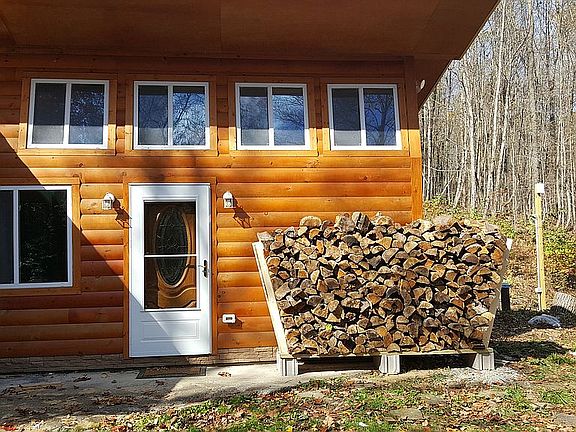 Hunter’s Paradise with 4 tree stands already set up!!! Nature’s haven on top of a mountain with a half mile private road through 54 acres of woods with wild apple trees and black raspberries with no tending, a stream and land that ends at corn fields. Brand new all-wood one of a kind contemporary log cabin with all the amenities imaginable. Wi-Fi cell phone accessible area, and entertainment centers throughout. Master bedroom includes personal office and seating area with King bed. Two extra bedrooms with Queen beds and a loft with two Twin folding beds. Wood stove heats entire home and has a propane wall heater for extra heat if needed. Livingroom futons open to two Full beds. Main bathroom includes tub and cedared shower. Half bathroom includes toilet, slop sink, and new washer and dryer. All closets and pantries are built with cedar wood. Ceilings include stylish high-hat lighting and ceiling fans. Sleep under a blanket during the summer days and never get hot. Kitchen appliances are all new stainless steel. Designed with open floor plan for optimal living space. Solid butcher block dining table sits eight. All furniture included with purchase of cabin. All you need is your clothes to move in. Cathedral ceilings and high windows to maximize natural light. Private well water is impeccable and septic in great shape. All the amenities you need while being completely off the grid! Home runs on generator located near shed. Property located in the middle of nowhere but in the middle of everything! In the summer enjoy the outdoor pool with swimming lanes and diving boards, and kiddie pool available for free usage to township, located two miles away. Oneonta shopping centers 20 minutes away. Cooperstown with stunning Otsego Lake and beautiful beach, baseball Hall of Fame, wax museum, wine tasting vineyards, fine restaurants, Howes Cavern, and more…all within 20 minutes away.