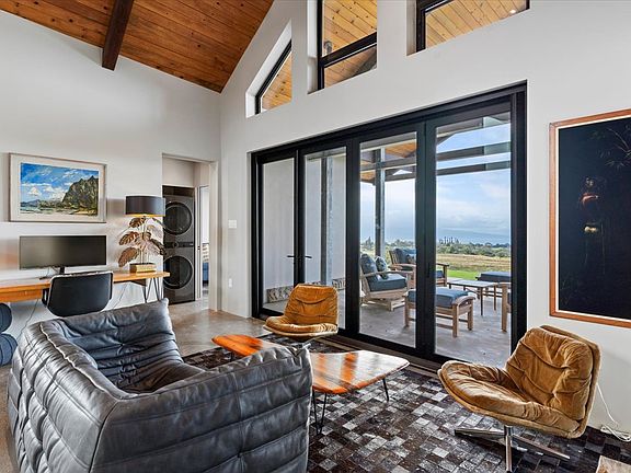 Escape to Kupono Hale, an extraordinary off-grid sanctuary nestled in the breathtaking beauty of upcountry Maui. This architectural masterpiece combines cutting-edge sustainability with unparalleled luxury, bi-coastal views, and a self-sufficient retreat powered by advanced solar energy and rainwater catchment systems. Folding doors seamlessly connect the open-concept kitchen and living area to the stunning outdoor space, creating a true indoor-outdoor living experience. Every detail of this home has been carefully crafted to harmonize with its surroundings, from the dynamic roof design that captures both sunlight and views to the use of locally sourced materials like Cook pine. With its striking design, unparalleled energy efficiency, and awe-inspiring vistas, Kupono Hale is the ultimate sanctuary for those seeking tranquility and eco-conscious elegance. Lease details: - 6 months + - furnished - A/C - carport and exterior parking - storage closet - completely off grid - no pets - quarterly pest control - solar hot water - induction stove top - in suite laundry - no smoking All utilities and fees included in rent. Welcome to paradise.
