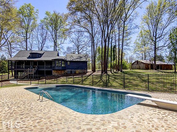 ATTENTION NATURE LOVERS! INCREDIBLE "FARMHOUSE STYLE" SHOWPLACE COMPLETELY RENOVATED WITH DESIGNER TOUCHES THRU OUT + BARN, SPARKLING POOL AND MAJESTIC 7.4 ACRE WOODED "PARADISE" SETTING WITH IT'S OWN STOCKED POND! You will fall in love with the soaring 22' cedar lined ceilings, hand hewn beams, barn doors and wide plank hardwood flooring! Chef's kitchen equipped with Carrera marble counters, huge center gathering island, handcrafted cabinetry, soft close drawers & upscale stainless appliances! King size owner's retreat on the main w/decorator spa bath right out of a magazine! Split staircases lead to 2 additional generous suites too! Finished terrace includes rec & billiard rooms + guest retreat! Massive screen porch has breathtaking views of pool & pond!