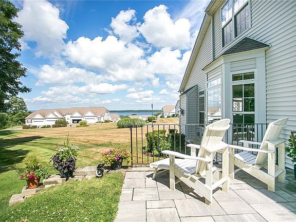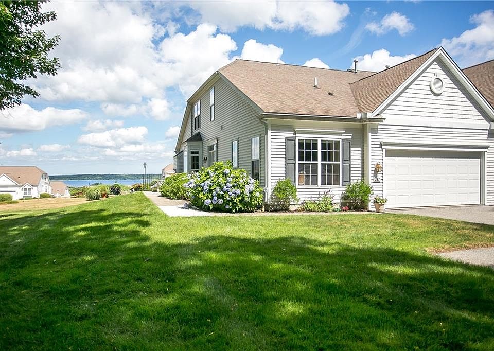 Highest on the hill gives you the best views of Narragansett Bay and sunsets. Not only will you have stunner views from each room this end unit sits on a peaceful side wooden lot, giving you a jungle like feel. The immaculate townhouse has a spacious open floor plan with an eat-in kitchen with stainless steel appliances, dining room and a comfortable living room with a gas fireplace. First floor master suite, an office, laundry room and a half bath offers an easy one level living if needed. Your guest will be happy on the second level, offering two bedrooms, a full bath, plus a den giving everyone privacy. Need more room? You got it! A cozy finished basement, a large storage room, and one smaller room for your wine cellar or workout space. Pull right into your two car garage with easy access into the kitchen. Just perfect... Can't wait to show you this gem!