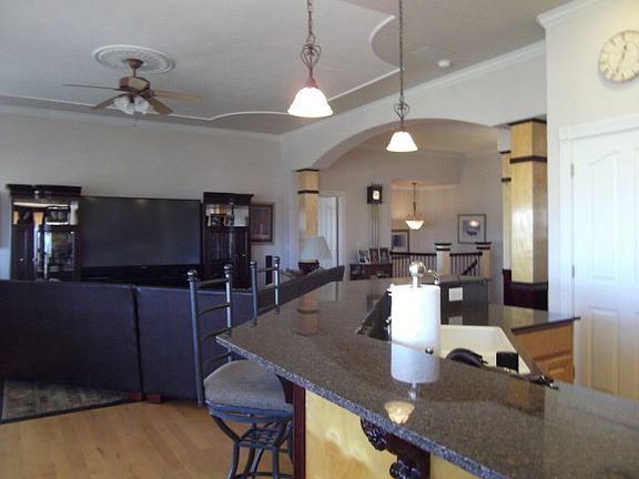 From the moment you open the door, you'll wish you were home. Beautiful ceiling treatments accent each room, glowing hardwood, granite kitchen accents, a master bath unlike any other, all designed with your desires in mind. A massive family room with slate flooring leading to the bar, complete with wine cooler awaits family and friends. A covered, enclosed patio is perfect for outdoor cooking and dining whatever the weather. An additional detached garage will accomodate 5 cars, a fantastic workshop or room for storage or hobbies.