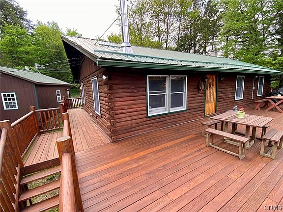 beautiful log home in Adirondack community of Wanakena, home of the ESF Ranger School. Cranberry Lake, with over 160 miles of shoreline, one of the largest and least developed of the Adirondack Lakes. Property bounds the 5 Ponds Wilderness area. 2023-02-02