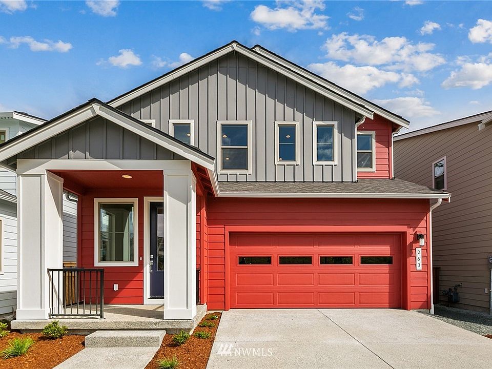Contemporary, 2-story home in Wind Rose by Conner Homes in the Greenbridge master-planned community. Features attached 2-car garage, Great Room Concept on Main, Kitchen w/walk-in pantry, granite counters, soft-close cabs, large Dining & Living Room areas with gas FP plus bedroom & 3/4 bath. Upstairs spacious Master w/large bath & W/I closet, 2 more beds, full bath, loft & laundry. Landscaped with fenced rear yard & covered patio. Close to Seattle & SEATAC. Est Dec Completion.