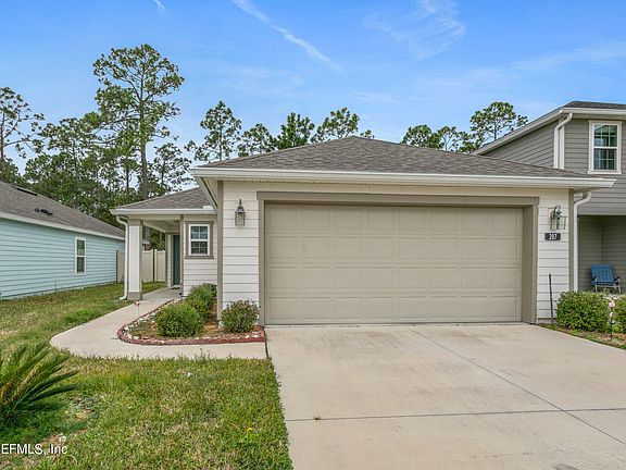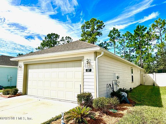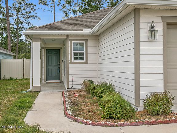 This 2019 split floor plan home is conveniently located near shopping and is within 15 minutes of I-95, downtown and the beach. The community of Castine Cove is intimate with few neighbors and includes a community pool and low HOA! The serene interior features stainless steel appliances and granite countertops. The smart thermostat, energy saver water heater and automatic sprinkler system are added value. The open concept and recessed lighting brings abundant light into the entire living space. The secluded master is set to the back of the house with tray ceilings and a walk in closet. The laundry is in its own utility room just off of the kitchen and next to the two car garage. This property backs up to a preserve so you will always be able to enjoy your backyard with a view of nature.