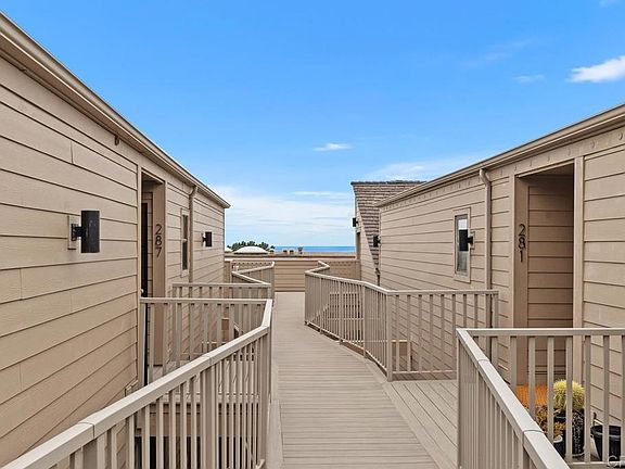 Wide ocean views AND most desired location in Del Mar and in complex! Top level Penthouse, no attached walls. 2/2 condo with many upgrades including a newer kitchen with Birch cabinetry, Thermador built in Microwave, warming oven and oven. Bosch dishwasher and stainless refrigerator. Full granite wall behind stainless range hood. Deck was upgraded to stainless steel cable railings and Trex type decking.*** Built-ins were added in the living room. They surround the fireplace which has new tile and firewood storage under Hearth. Kitchen has been opened to Living room for pass through, stools and a more spacious feel. Berber carpet in living room, dining room and bedrooms is like new. Beautiful wall sconces. Bathrooms feature lighted mirrors and an incredible Jacuzzi Steam Shower with music! Master closets have built in organizers. Resort like amenities, Pool, Spa, showers, clubhouse free to use, tennis courts! Del Mar Woods has the ideal location, just blocks from the Beach and Village. Yet it is away from Beach traffic and Race Track traffic. It is located on a private cul de sac at the Southern tip of Del Mar, right near Torrey Pines Reserve.
