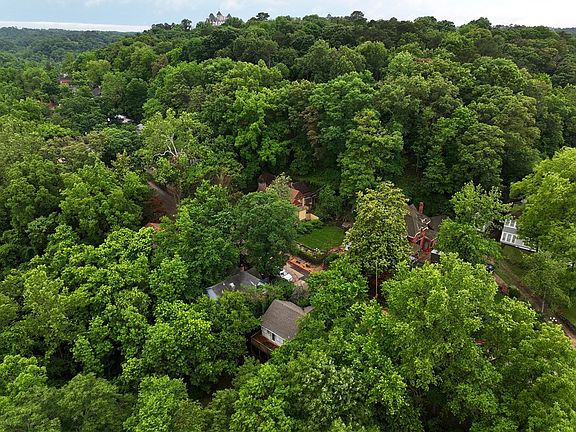 Captivating Eureka Springs Gem! This home is well situated on the historic loop surrounded by beautiful Victorian architecture within walking distance to eclectic shops, restaurants and downtown entertainment. The upper level of the home has a spacious open concept featuring a living room with lots of windows, dining area, a galley kitchen including plenty of cabinet storage and counter space with access to a large deck and full bathroom. The lower level has a bedroom, laundry room area, a large bathroom including a clawfoot tub, and an additional open living area that leads out to a deck and the huge backyard with endless possibilities.