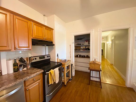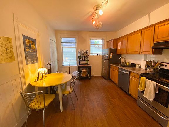 Large and sunny 3 bedroom 1 bath apartment available in Portland's Parkside neighborhood. Wood floors, high ceilings, and period detailing throughout with separate living room, and kitchen. Tenant pays electric, heat, and internet. Owner pays hot water and water/sewer. No smoking, cats considered with monthly pet fee.