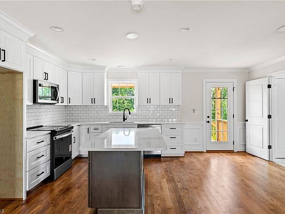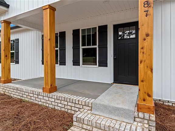 Beautiful, One Level, New Construction home with Vinyl Board and Batten Siding on almost acre lot ... Notice all the custom details! Inviting Covered Front Porch, Beautiful Hardwood Floors throughout Living Room, Kitchen and Primary bedroom, Vaulted Living Room Ceilings and gas log fireplace, Kitchen offers stainless appliances, Quartz Countertops, Tile Backsplash, Island with Bar Seating and Dining Area too, Mud Room with drop zone, Storage Cabinets, Pantry and Coat Closet with Exterior Access to Driveway/Carport area...Recess lighting throughout... Notice the double trey ceilings in your Primary BR & bathroom w double vanity, Beautiful walk-in Tiled Shower w recessed shower niche, corner seat, and tile floors, Walk-in closet... Split Bedroom Floorplan... Be sure to step outside to the covered Back Deck to relax and enjoy the wooded view! Two car, 20x20, detached, metal Carport ... Preferred Lender Amy Cain Tarr with Canopy Mortgage - Up to $3000 lender credit (see agent only)