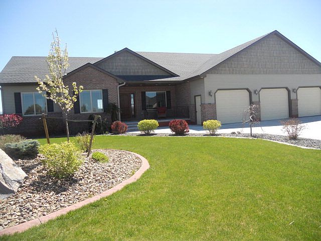 Beautiful home with all the amendities you've been looking for. Great curb appeal, large spacious rooms. Beautiful cabinetry throughout. Double ovens in kitchen - trivection and convection. Oversized 3 car garage, with separate doors and openers. The landscaping is designed for easy maintenance with perennials, curbing, and auto sprinkler system. When you enter this home you are immediately embraced by the quality and beauty of the great room, formal dining room, and gourmet kitchen. For those who have a home business, the large spacious den is just the right fit for anyone. The main floor features 2 large bedrooms, 2 spacious bathrooms, walk-in closets, Large laundry room with exterior entrance, covered patio, and front porch. The large basement is home to a huge family room, 2 very spacious bedrooms with walk in closets, a third bathroom, and some pretty great storage. Extra's features include 2 gas water heaters, GFA Furnace, AC Unit, and the home is wired to run off of a generator if the power goes out. For the man who needs a shop - there is plenty of room This house is very efficient - Level Pay Power bills are $52 per month and level pay gas is $47 per month