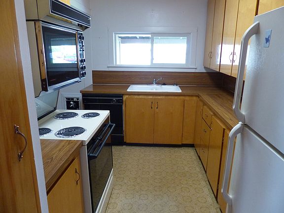 Comfortable home in Burns. Large living area with a sunken family/dining room. Galley kitchen has lots of cupboards, extra room in the back perfect for storage, reloading room or office. Work area and enclosed back deck. Newer vinyl windows, metal siding & newer roof. Paved driveway, corner lot and underground sprinklers to complete for easy care. Listing #11037 ADDRESS: 287 W. "B' St., Burns PRICE: $79,900.00 TAXES: $1,015.03 FINANCING: Cash or conventional loan YEAR BUILT: 1948 SQ. FT.: 1,560 - per county records LOT SIZE: .13 acre lot HEAT SOURCE: B/B electric BEDROOMS: 3 BATHROOMS: 1 APPLIANCES: Range, refrigerator & B/I dishwasher GARAGE: None