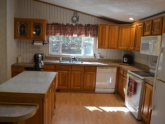 Very nice community, just 5 minutes to shopping, and end of road privacy, contribute to an ideal location! This home features has been gently lived in. You'll find surprising open living space, ensuite primary bedroom, with a large living room plus an inviting family room and a beautiful wood burning fireplace. Kitchen, family room with fireplace, dining room and living room form a "Great Room" space. Lots of inviting, cheerful space in this lovely doublewide home, with skylights for a cheerful, bright atmosphere. Private wooded view, easy maintenance, and a huge deck; and all this is well maintained and in great condition, ready for you to make it your own custom home. Lots of storage space inside, quality outdoor storage sheds, and even room for you to add a carport or garage. And the kids can walk through their own woods to school! So much to offer at a great price!