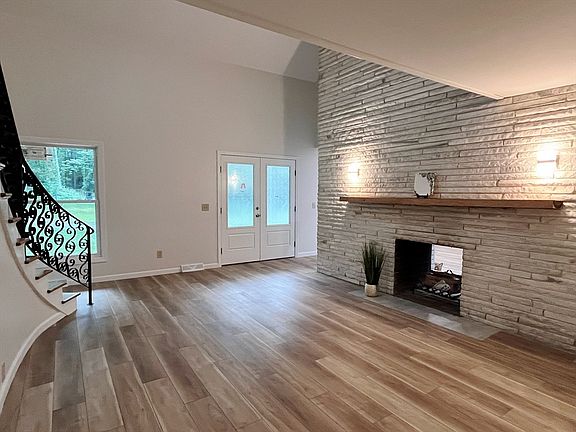 Set back from the road you'll find this beautifully renovated 4-bedroom, 3-bathroom home offers modern comfort and style. The main floor features a spacious bedroom with a walk-in closet and a luxurious en-suite bathroom, complete with a soaking tub, double vanity, and elegant finishes. The living room boasts vaulted ceilings and a stunning floor-to-ceiling fireplace. The kitchen is a chef’s dream with gorgeous granite countertops, an oversized peninsula, and all-new stainless steel appliances. A gorgeous balcony overlooks the living room that leads to the remaining 3 bedrooms and 3rd full bathroom. Additional highlights include first-floor laundry, a 3-car garage, new 200 amp electrical service, a new roof, gutters with leaf guards and new windows. This home also has central air and (2) 275 gallon oil tanks so you can stock up when prices are down! A new septic system will be installed before closing, ensuring a move-in-ready experience.