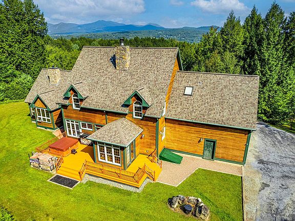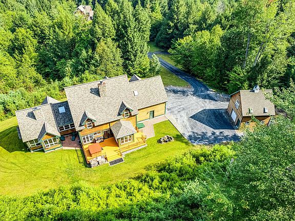 Perched high above the Mountain Road, but only one minute from it, sits this secluded Four bedroom, Five-and-a-half bathroom impeccably maintained home. Here panoramic views stretch from Mount Mansfield across Smugglers Notch to Spruce Peak and down the Sterling Ridge. The 4.1-acre property shares a boundary with the 300+ acre Cady Hill Forest which avails unmatched privacy as well as direct access to some of the best mountain biking, hiking and snow snowshoeing in Stowe. Once inside the kitchen features cherry cabinets, quartz countertops, butler’s pantry, breakfast nook and adjacent dining room. Nine-foot ceilings, a bank of south facing windows and fireplace anchor the living room. The first-floor primary suite occupies its own wing of the house with vaulted ceilings, bathroom with soaking tub and steam shower, walk-in cedar closet and den. Upstairs you’ll find another primary suite and two additional bedrooms all with en suite bathroom, space for a king bed and hardwired internet access. You’ll love the attached oversized, heated garage with large closets to simplify life in Stowe. An additional detached garage provides storage and parking options as well as flexible living space above with a full bathroom and connections for a kitchen. This property is ready to go with a new roof, exterior paint/stain, hardwood flooring, radiant heat and air conditioning.