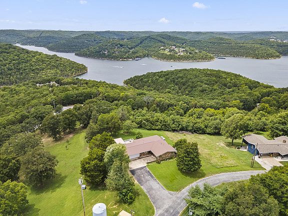 Located in the Table Rock Lake Community of Wood Ridge Estates. Features a panoramic view of Table Rock Lake and the Ozark's Hills and just a 5-minute drive from public launch access. The main level is walk in with no stairs and features 3 bedrooms, 2 baths, and open kitchen with granite counters, living room with native stone fireplace, and an amazing sunroom where you can enjoy the spectacular view year around. A large veranda is accessed from the sunroom and perfect for outdoor living or entertaining large groups. The Lower Level features a mother-in-law quarters with living room, fireplace, kitchen, bedroom, and bath. Property also has a Storm Shelter. Must See! Won't Last. Priced to Sell Fast! Can buy additional 2 lots below home for additional $$.