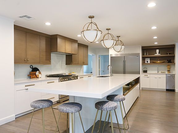 Midtown Mid-Century Modern remodel by Kirkendall Design with acrylic and walnut cabinets, state of the art appliances, floor to ceiling panoramic windows with a view of the pond from the master suite. The renovation includes electrical, HVAC and plumbing, hardwood floors, windows and much more. Home has large rooms and spacious closets. Enjoy the beautiful scenery from the moment you enter with natural light throughout. 500sft 1bed/1bath boat house not included in sft, whole home generator