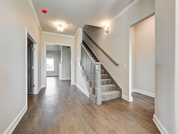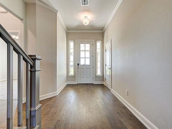 The Finns Point in Brentwood resides within the esteemed Norman School District and occupies a generous 0.82 acre lot. This charming 2-story farmhouse features a split 3-car garage, a welcoming covered front porch, and an expansive yard. Upon entering, is a spacious flex room, perfect for a study, hobby room, or playroom. The living room boasts a gas fireplace, elegant wood floors, and large windows overlooking the back patio. Seamlessly connected is the kitchen, complete with island seating, quartz countertops, pull-out drawers in the lower cabinets, pull-out trash and a sizable pantry. The primary suite offers a roomy walk-in closet and a luxurious bathroom featuring a 6-foot tub, and a spacious walk-in shower with Schluter waterproofing. The 2nd bedroom includes a large closet and its own full bath. Upstairs, you have a bonus space which would work great for a game or hobby room, two additional bedrooms, another full bath and a door accessing the mechanical room in the attic. Adjacent to the garage entry, you'll find a mudroom, half bath and laundry room. This home provides ample storage with the 3-car garage and extra closets throughout the home. The backyard boasts a covered back porch with a beautiful outdoor fireplace and a spacious lawn. Other notable features include a smart system, tankless water heater, healthy air filtration system, storm shelter, and full sprinkler system. The Brentwood community stands out with its larger lots, easy access to OKC, and a future pool and clubhouse that will be built. With its emphasis on quality and care, this home is Built Healthy, Built Smart, and Built to Last.