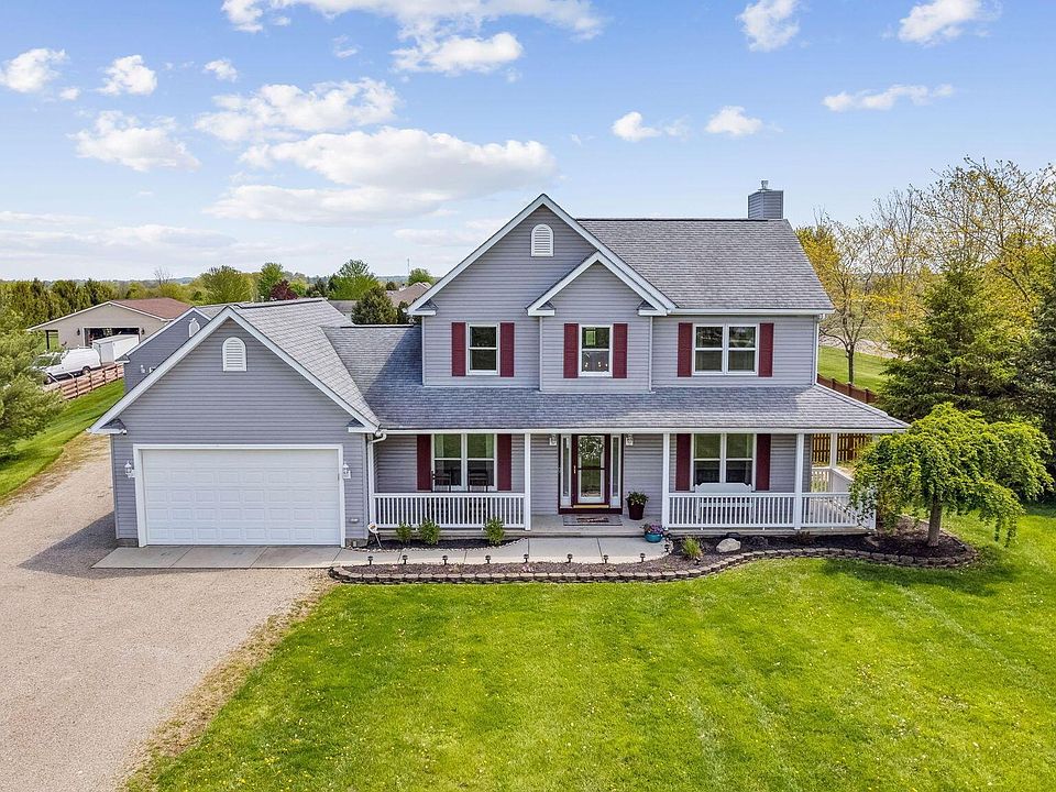 Spectacular 1.7 Acre Homesite! Updates abound throughout this inviting 3 bedroom, 2.5 bath home w/over 2100 sq. ft of living space w/ amazing garage spaces including 2-car attached, 20x40 heated detached garage w/workshop and additional storage shed. The renovated first floor offers 2-story entry, private office, large dining, laundry, kitchen w/painted white cabinets, new coffee bar, stainless appliances, LVP flooring, eat-in space open to the family room w/shiplap and tile surround fireplace. The 2nd fl owner's suite highlights walk-in closet and updated bathroom w/new flooring and vanity. Full basement, finished recreation room. Enjoy entertaining on the paver patio, covered deck and oversized fence yard. Other updates include roof, HVAC, HWT and 200amp electric panel. Simply Stunning.