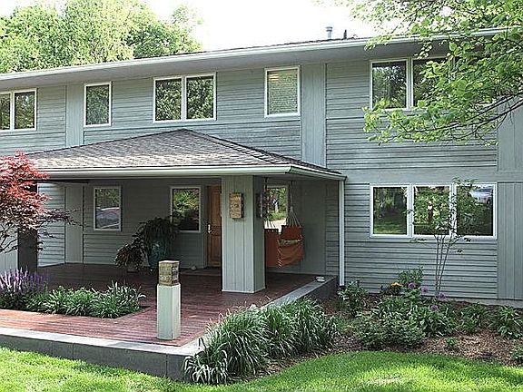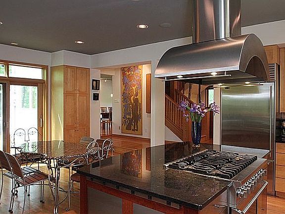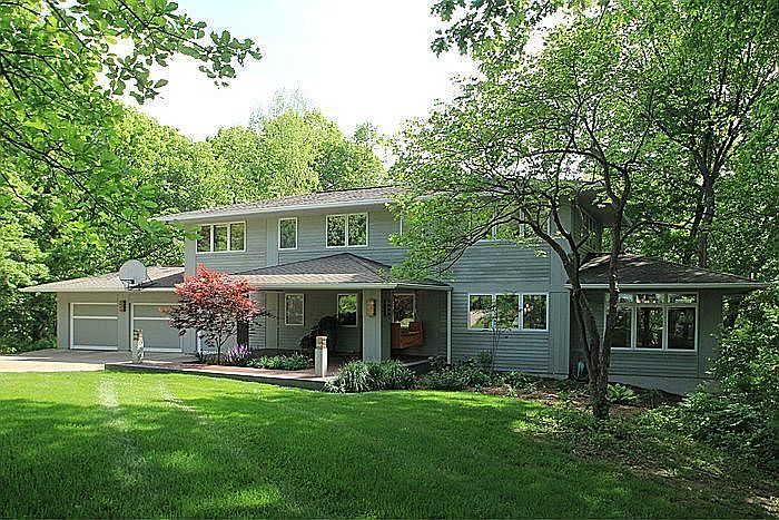 Natural Perfection. Architecturally designed home w/serenity, comfort, privacy & beauty, nestled upon 1.66 acres w/ ultimate privacy.Modern lines, expansive windows & natural materials create a seamless blend of structure & landscape. Welcoming front porch w/ hand-crafted artisan light fixtures; eat-in kitchen w/ fireplace & adjoinIng leisure room; formal dining rm; main flr family/TV rm & library/study; 2nd level w/4 bdrms, 3bths,