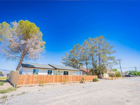 Beautifully remodeled from top to bottom SINGLE STORY home! Move right in and enjoy country living in tranquil Pahrump! Imagine yourself cooking gourmet meals in your completely new kitchen with shaker cabinets, quartz countertops and SS appliances. You will find a spacious primary bedroom with attached private luxurious bathroom with walk in shower. Two secondary bedrooms provide ample space for family or friends as well as well appointed hall bathroom with double sinks. NEW roof and windows throughout the home will provide you with many years of easy care and energy efficiency. New luxury vinyl flooring throughout the home. Even your vehicle will be comfortable in the oversized garage with newly epoxied floors! Enjoy your fenced in backyard from your covered patio which also leads you to a basement cold storage area. You won't want to miss this one, schedule your showing today!