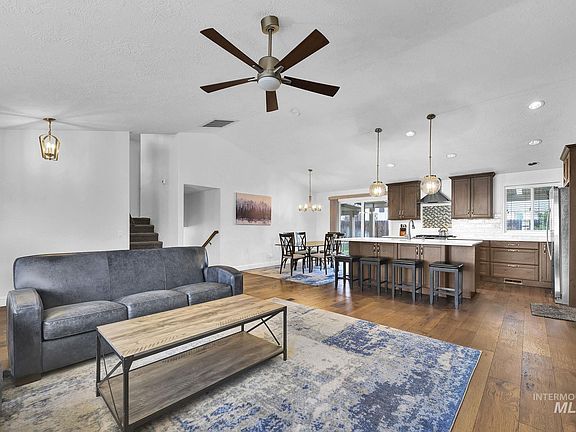 Discover the perfect blend of sophistication and functionality in this beautifully updated tri-level home. The kitchen stands out with its massive storage cabinetry, dove tail construction, and soft-close mechanisms. Paired with beautiful engineered wood floors, and topped with luxurious granite countertops, this kitchen is both a culinary dream and a central gathering spot. The entertainment on this level extends into the backyard with a huge covered patio and beautiful mature trees which make this space warm, welcoming and private. The guest bathroom upstairs and the primary bathroom both boast contemporary finishes and a refreshed design which include dove tail cabinetry and granite counter tops. The primary bathroom includes a stand up shower and a separate jetted tub! The huge downstairs bonus room has recently been used as a 5th bedroom. Possibilities are endless in the oversized 2-car garage. 35' RV parking, raised garden and low maintenance yard make this home comprehensive and move in ready!