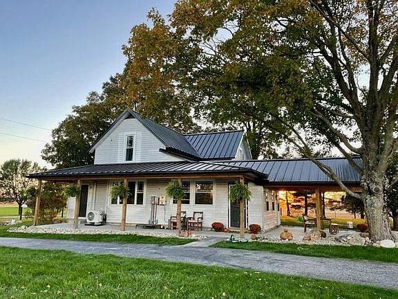 Charming home with 3 bedrooms. The mudroom serves as a practical entry point, leading into the kitchen & providing access to the lower level. A spacious dining room creates the perfect space for hosting gatherings & flows into the front room - which has an exterior door, living room, & primary bedroom. Recent updates include a solar panel system (2019), new windows throughout the home & barn (2020), a new well pressure tank, an updated bathroom, & a new roof (2023). Step outside to 5.04 acres of natural beauty, including 2 acres of fenced pastures. The property features a detached garage, outbuilding, a thriving orchard with apple, pear, peach, cherry, plum, & persimmon trees, six berry varieties, a renovated chicken coop, an herb garden, 9 garden boxes, & a concrete patio with gazebo