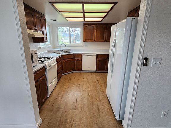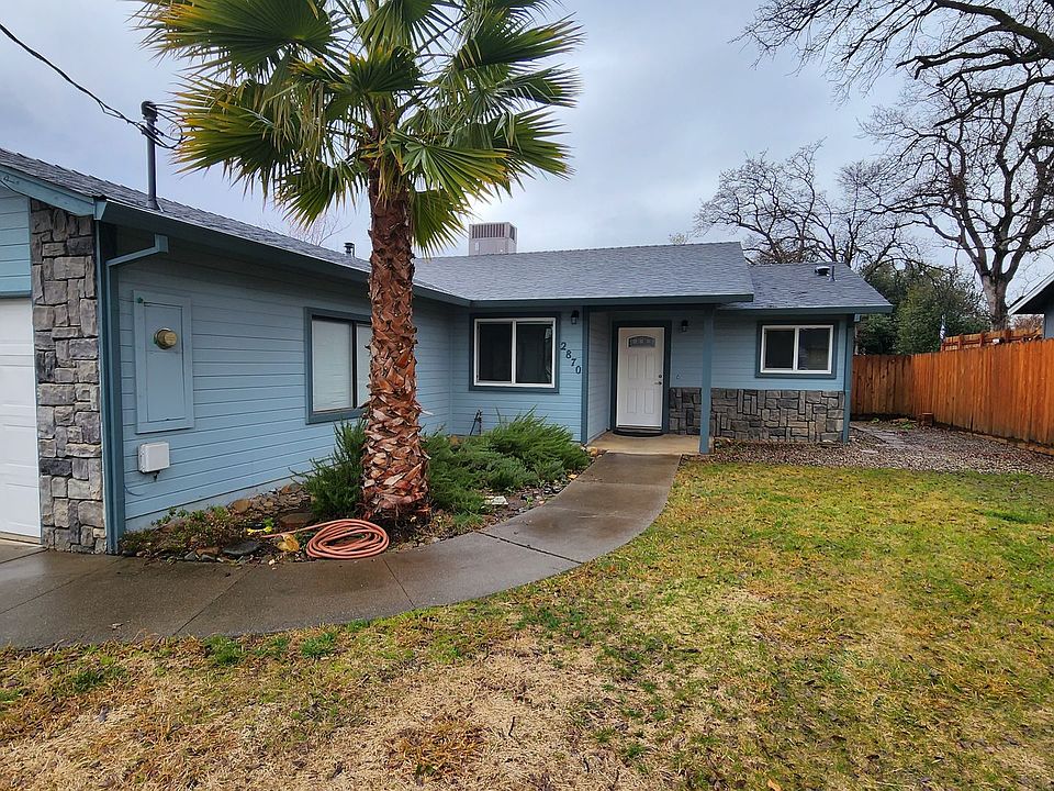 Welcome to this charming 2 bedroom, 2 bathroom home located in Redding, CA. This cozy house features washer/dryer hookups, a fireplace, oak kitchen cabinets, and carpet in the bedrooms. Enjoy the convenience of being close to shopping and restaurants, while also having a back patio with a ceiling fan for outdoor relaxation. The luxury vinyl plank flooring adds a touch of elegance to the space, and the ample cabinet space provides plenty of storage. Stay comfortable year-round with central HVAC and ceiling fans. The fenced back yard and shed(s) offer privacy and additional storage options. Pets are considered upon owner's approval. Located in the Enterprise School District, this home is perfect for anyone looking for a comfortable and convenient living space in Redding.