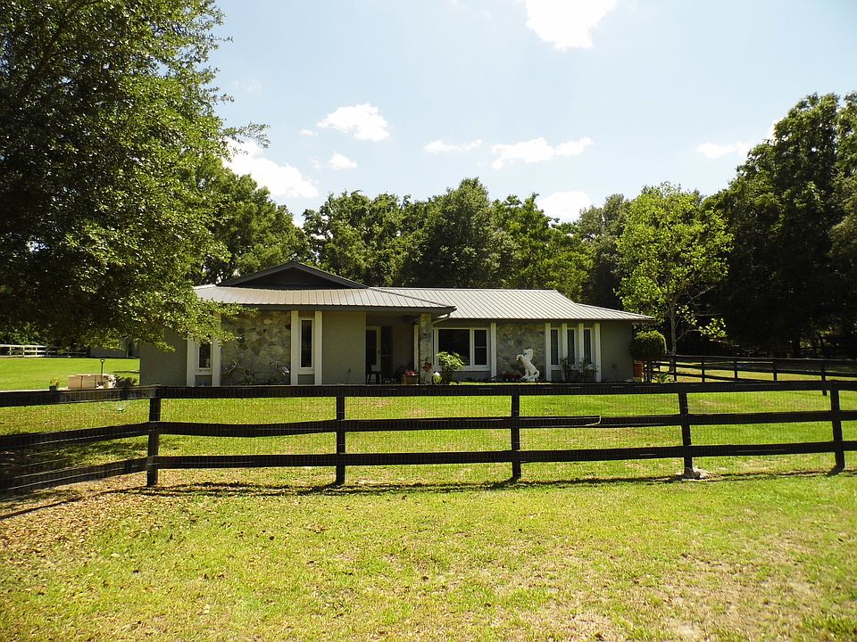 3/2 SPLIT PLAN. VERY NICE HOME ON 2.5 ACRES. NEW FLOOR IN LIVING ROOM. HOME OFFERS DINING ROOM, LIVING ROOM PLUS FLORIDA ROOM. WALK-IN CLOSET IN MASTER BEDROOM, CATHEDRAL CEILINGS. ATTACHED 2 CAR GARAGE PLUS SEPARATE GARAGE OR WORKSHOP/BARN, AND AN RV CAROPORT! PROPERTY IS ALL FENCED. CLOSE TO THE VILLAGES SHOPPING AND RESTAURANTS. SHOWS GREAT!