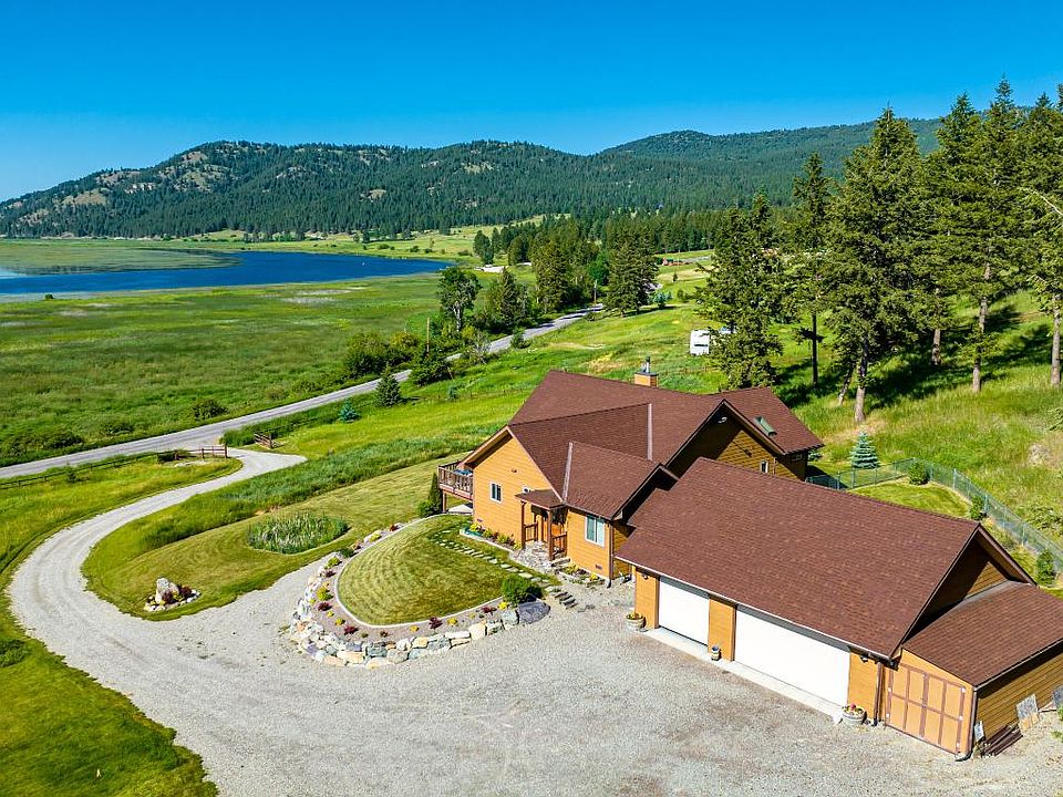 Remarks: A true NATURE LOVER'S DREAM. Situated on nearly 6 acres, this idyllic home with vast deck offers incredible views of Smith Lake and Glacier National Park. This one-owner 3 bed/3 bath pristine property boasts a spacious office, beautiful landscaping, an over-sized three car garage, + additional 2 car garage/shop with RV parking, fenced in backyard, mud/laundry room and a walk-in pantry. No ZONING, CCR's or HOA. Experience the peaceful privacy of this Montana retreat, still less than 20 minutes to Kalispell shopping. A mere 400 yds to the boat ramp, Smith Lake is motorized - a popular fishing/ice-fishing spot for trout, yellow perch, and Northern Pike. Enjoy kayaking, paddle-boarding and bird watching for Canadian Geese, Sandhill Cranes and Blue Herons. Utilize additional acreage for horses,