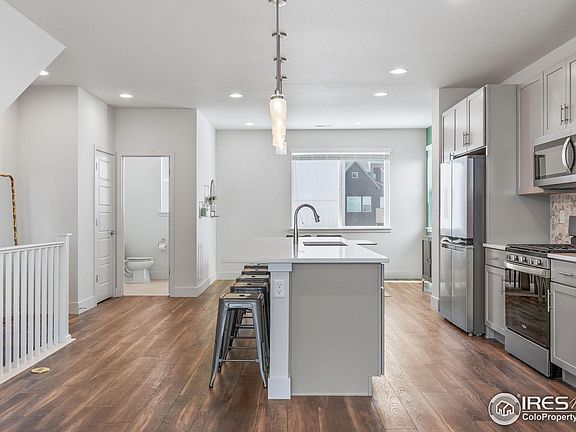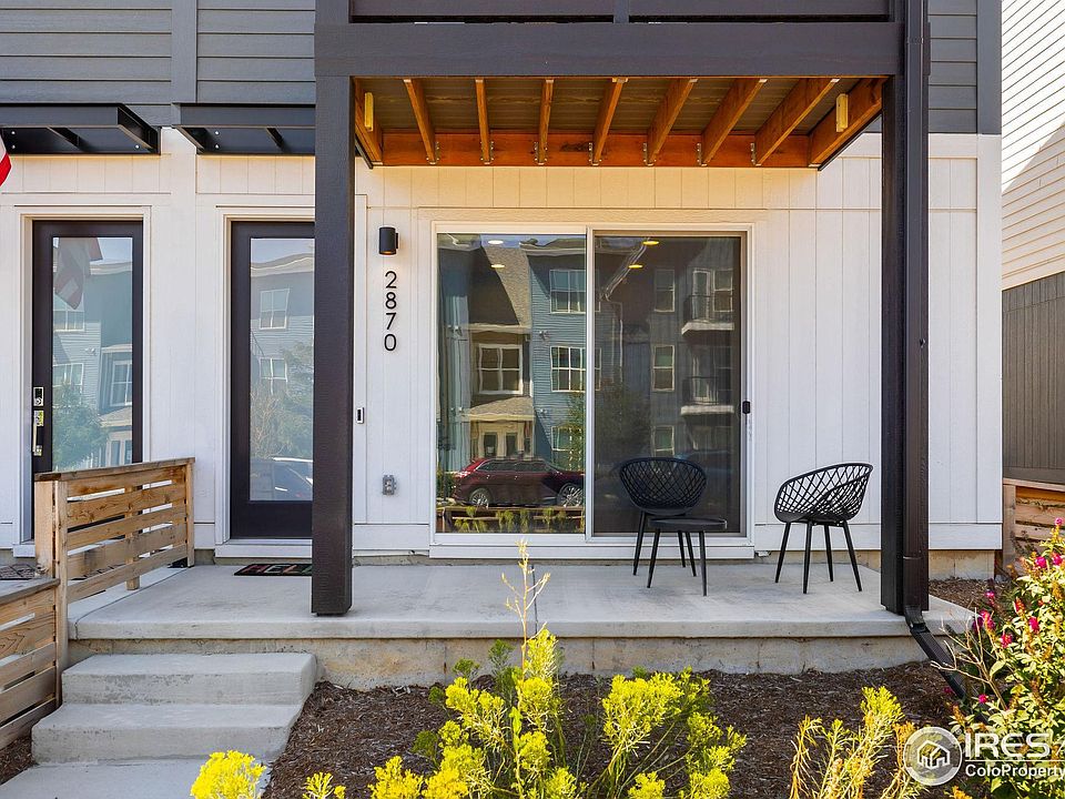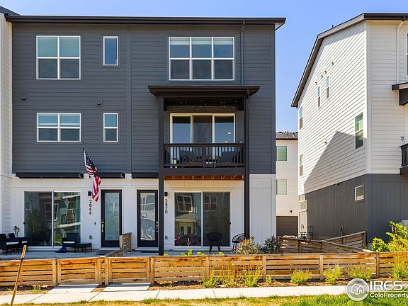 Welcome to exceptional living in the vibrant Baseline community of Broomfield. Built in 2023, this end-unit residence offers an abundance of natural light with sought-after Southern, Western, and Northern exposures, creating a bright and airy atmosphere throughout. This home is as smart and eco-conscious as it is stylish and comfortable, with LEED-certified construction, and energy efficient solar panels that will transfer to the new owner at closing, reducing your carbon footprint on day one!Step inside to discover a thoughtfully designed floor plan that seamlessly blends style and function. The main level greets you with a versatile flex space-- the perfect office space, studio, or home gym with its own adjacent bath. A spacious open layout allows the kitchen, dining, and living areas to flow effortlessly together. The gourmet kitchen comes complete with a large island, stainless steel gas appliances, and premium finishes. The adjacent living room provides a relaxing space with access to a serene balcony, ideal for enjoying a cup of coffee or a breath of fresh Colorado air. The upper level is dedicated to rest and relaxation, featuring two generously sized bedrooms, each with its own full en-suite bathroom for ultimate privacy and convenience. An upper-level laundry room, conveniently located between the bedrooms, adds to the home's practicality. Even more convenience comes from the home's attached two-car garage, complete with 220-volt power capabilities- the perfect additional storage, and space for tools or even an EV charger.This prime location puts you within easy reach of a variety of shops, grocery stores, and restaurants. Popular destinations like Costco, Topgolf, and Home Depot are minutes away, and you'll enjoy effortless access to both Denver and Boulder. Experience the perfect balance of urban energy and outdoor serenity in a community that has it all. Don't miss the opportunity to maximize the essence of modern Colorado living!