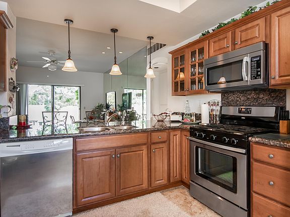 This end-unit condo at the Desert Princess in Cathedral City epitomizes the Desert Lifestyle. As you enter this 3 bedroom, 2 bath home, you start feel your relaxation mode kicking in. Amenities include updated kitchen cabinets & granite counter tops, stone tile flooring, and voluminous ceilings. The covered patio is an entertainer's delight. Situated adjacent to the driving range green, the patio takes outdoor entertaining to a whole new level. Desert Princess has an affordable 27 hole PGA Championship golf course, no tee time lotteries, no initiation fees, 33 swimming pools, 10 Tennis Courts, Health and Fitness Center, and is rated among the best in the valley by Golf Digest. Less than ten minutes from Palm Springs International Airport, Desert Princess is close to restaurants, shopping, casinos, and everything the Desert has to offer. Make 28700 Desert Princess Drive your home today.