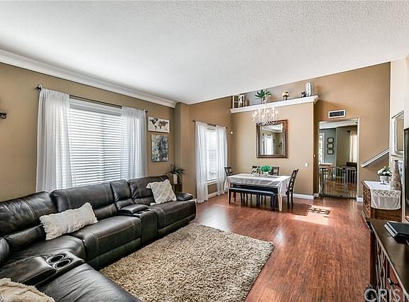 Come and see this turn-key, 2-story home with downstairs bedroom in the private Wisteria community of Santa Clarita! Some of the great interior features include: Updated flooring, Living room with crown molding, Dining room with chandelier and soaring ceilings, Open kitchen with quartzite counters, tile backsplash, single basin sink, matching stainless appliances, center island with bar seating, workstation and tons of cabinet space, Family room off kitchen with built-in media center, ceiling fan and fireplace, Downstairs bedroom and bathroom perfect for guests, Master bedroom with vaulted ceilings and ceiling fan, Master bathroom with dual sinks, vanity station, separate soak tub and gorgeous standing shower, water closet and oversized walk-in closet, 3 additional spacious bedrooms upstairs, Guest bathroom with tub/shower, Loft area perfect for an additional seating area, Upstairs laundry room, Nest thermostat and so much more! Some of the great exterior features include: Great curb appeal, Private backyard with covered patio, Leased solar to keep energy bills low, Great HOA amenities such as pool and spa, Close proximity to shopping, parks, and so much more! This will be a great place to call HOME!