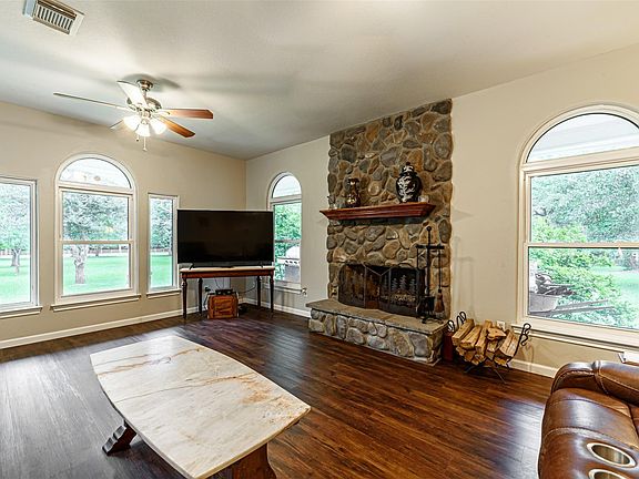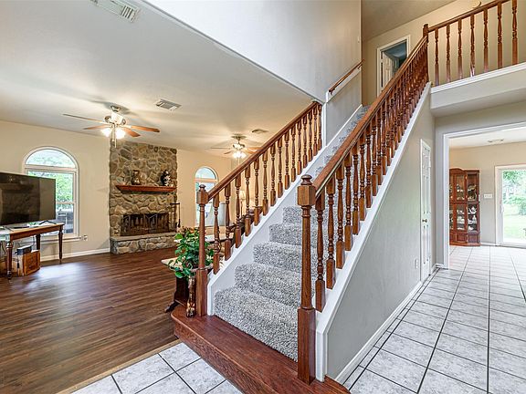 Breathtaking Country home on 5 acres with unfinished guest house. The expansive covered front porch is perfect for enjoying the wildlife scenery. There are updates throughout the home, please see the full list online. Two story charming country home with primary bedroom on the first floor with an en suite bath. Primary bathroom has a stand alone glass framed shower, jetted tub and large vanity area. Light and bright family room has a wood burning fireplace with stone surround and lovely picture windows overlooking the property. The kitchen features glass front wood cabinets with ample storage cabinets as well. The 2nd floor features oversized secondary bedrooms complete with window seats in the bedrooms. The property has mature shade trees, detached garage and a guest house that is unfinished. There is a whole house generator on the property as well. The possibilities are endless for this property. Bring your horses and family to make memories that will last a lifetime.