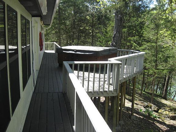 Lakefront home on table rock lake with 2 lakefront lots, over sized 2 car attached garage, wrap a round deck w/ 6 person hot tub, all appliances stay and newer roof. Golf cart is included for and easy ride to the 10' x 30' boat slip...boat slip is extra $$. This 3 bd 2 ba home has recently updated baths, some in the kitchen and a newer roof. Plenty of storage in the crawl space with shed that has electricity. Home has wood burning stove for the winter's, central head & air and baseboard heat. Make offer seller wants to sell.