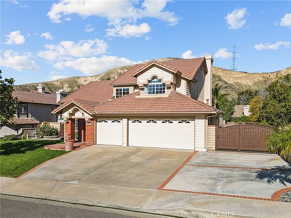 Discover true pride of ownership in this stunning 4-bedroom, 3-bath, Pool home w/ RV parking in Santa Clarita, where beautiful curb appeal and thoughtful upgrades create a warm and inviting atmosphere. The charming brick entrance and elegant double front doors welcome you into a spacious layout featuring high ceilings and abundant natural light. The formal living and dining rooms provide the perfect space for gatherings, while the upgraded kitchen is a chef’s dream with a large island, modern finishes, and plenty of counter space for entertaining.