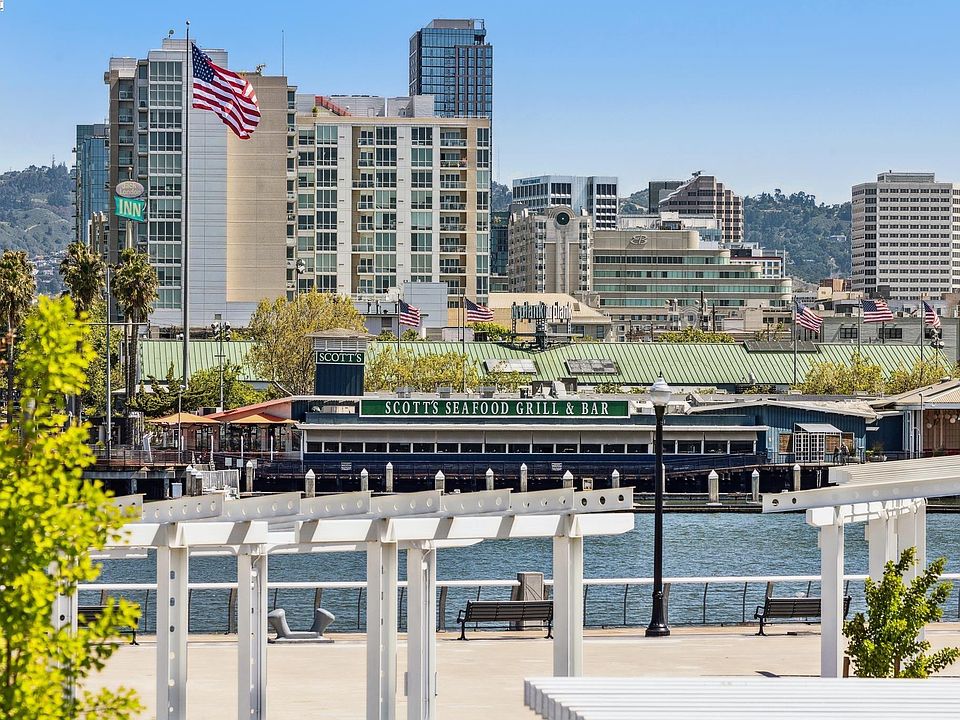 Stunning Alameda Bay 37, second-floor unit with builder upgrades and a VIEW was built in 2022. It’s a 2-bedroom, 2-bathroom, 2-car tandem garage w/Tesla charger and all appliances included. Step inside to see the 10-ft ceilings and breathtaking direct views of the water, docks and Jack London Square right from your spacious living room, dining room, upgraded kitchen and deck area. The modern kitchen has sleek granite countertops, stainless steel appliances, and ample storage space, making it a chef's delight. On one side of the condo is the master suite that has its own ensuite bathroom, dressing area and large walk-in closet, providing ultimate privacy. The other bedroom has views of the water that you won’t want to miss. The building has two separate bike storage areas and the unit includes all the smart technology you desire. Don’t miss the rooftop entertaining area with more beautiful views. Outside, the walking trails, public boat dock, picnic areas, and dining are steps away or enjoy the playground areas which are fun for everyone. Alameda Landing shopping, the Webster Tube and I-880 are minutes away.