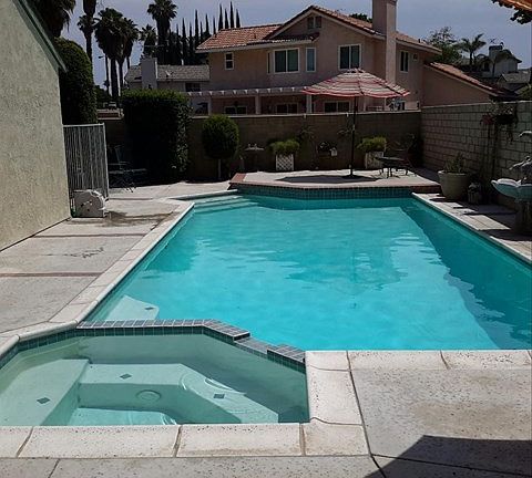 SINGLE STORY HOME WITH POOL & SPA TUCKED IN ON A STREET CLOSE TO SHOPPING AND EASY ACCESS TO THE FREEWAY. ALOT OF UPGRADES NEW DOUBLE PANE WINDOWS AND DOORS, NEW AC, CROWN MOULDING, REMOVED POPCORN CEILING IN MAIN ROOMS.THE KITCHEN HAS ALL NEW CABINETS WITH CUSTOM PULL OUT DRAWERS. GUEST ROOMS HAVE NICE MASONITE SLIDING CLOSET DOORS. THIS HOME OFFERS 3 BEDROOM AND 2 BATHROOMS WITH A HUGE BONUS ROOM THAT DOES NOT HAVE A CLOSET. MASTER BEDROOM HAS DUAL MIRROR CLOSET DOORS WITH A SLIDER THAT LEADS TO THE BACKYARD FOR EASY ACCESS TO THE POOL FOR HOT SUMMER NIGHTS. FENCED IN POOL AREA FOR PRIVACY AND SAFETY. THE BACKYARD HAS A COUNTRY GARDEN FOR GROWING YOUR OWN VEGGIES. ROOM FOR THE DOGGIES TO RUN OR THE KIDS TO PLAY.. INSIDE HAS A KITCHEN THAT HAS AN OPEN ROOM TO THE FAMILY ROOM WITH A WOOD/GAS FIREPLACE. WALK INTO THE FRONT LIVING AREA THAT HAS A BAY WINDOW WITH A SEAT FOR DECORATION OR ENJOYING THE EXTRA SEATING FOR FAMILY GATHERINGS. TWO GUEST BEDROOMS WITH NICE FLOORS AND CEILING FANS. A MUST SEE HOME.. SOME WALLS ARE FRESHLY PAINTED INSIDE. LOW TAX AREA AND NO HOA. NEW ROOF IN 2008.