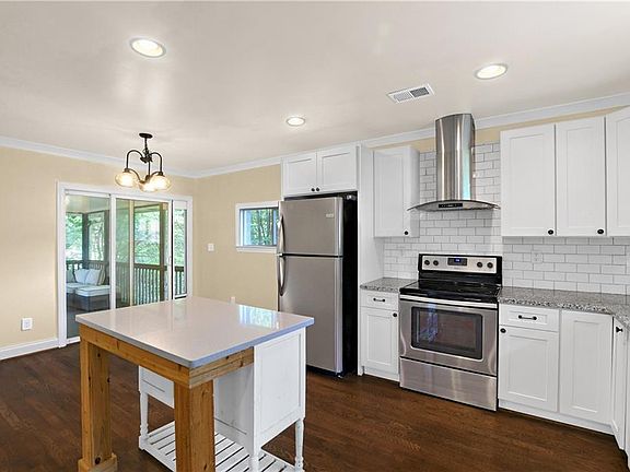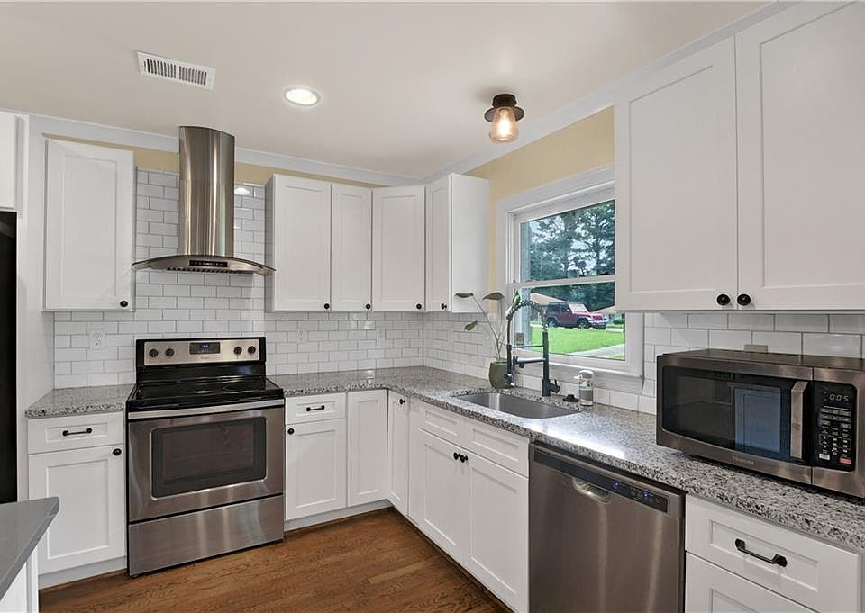 Charming all brick home located in Gresham Park. 3 bedroom and 2 full bath. Master bath suite comes with an extra large tiled shower, double vanities and large walk-in closet. Home has a massive basement with updated electrical that can be customized as a home gym, workshop, office space, home theater or simply for storage. Bright and open kitchen includes granite countertops, white cabinets, stainless steel appliances, subway tile backsplash and garbage disposal. Kitchen overlooks family room and eat-in kitchen. Real hardwood floor throughout the home. Large screened in porch comes fully furnished, and overlooks the private wooded backyard. Home comes with security system (door sensors, door and driveway cameras) that is controlled by phone app or console. Only a 6 minute drive from Sugar Creek Golf and Tennis Club, 7 minutes from Vela Park Food Works (opening soon)! Quick access to I-20 and I-285.