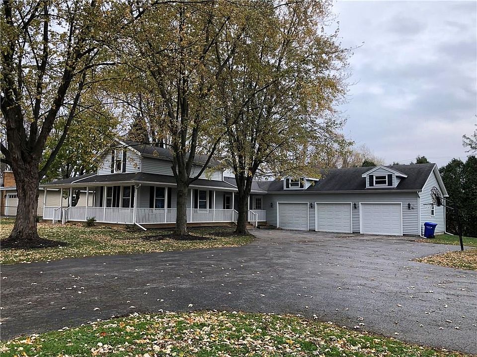 Gorgeous farmhouse completely renovated with all the modern updates! Newer granite kitchen, all newer modern baths, new carpeting, new paint! Complete wrap around porch is beaming with charm! 3 car (1000 SF) garage with work bench, over head lights and storage. Beautiful formal dining room space with french doors leading out to the front porch. Huge master bedroom with gigantic bathroom featuring tons of space and huge two sink vanity. First floor laundry & second entry way off the kitchen. Kitchen features stainless steal sink and dishwasher, recessed lighting, and beautiful flooring and cabinets. Come take a look, you will fall in love with this gem!