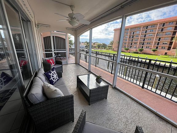 Furnished seasonal rental directly on the Intracoastal in the San Remo! All you need to do is pack a suitcase, the rest is waiting for you. The San Remo is a highly desirable gated community with it's own private beach, clubhouse with pool & hot tub, fitness center, and marina. The unit is the large 2 Bed 2 Bath layout. 1st floor unit with its own dedicated garage parking spot. Washer and dryer inside unit. There is a screened in lanai, as well as an outdoor patio (only 1st floor units have the additional patio space). Minimum 4 month rental. Owner pays all utilities including WiFi and cable