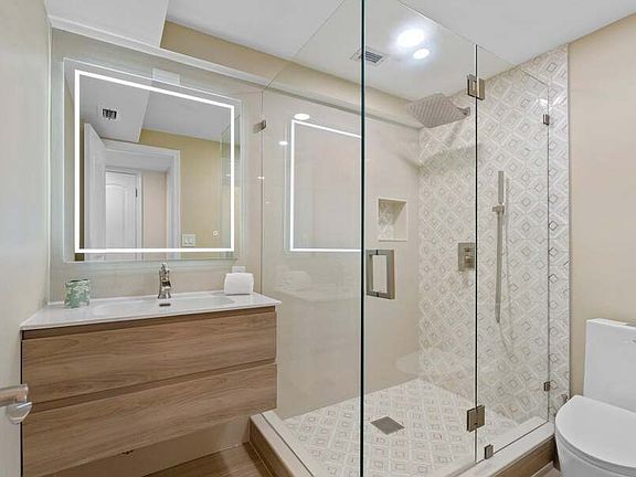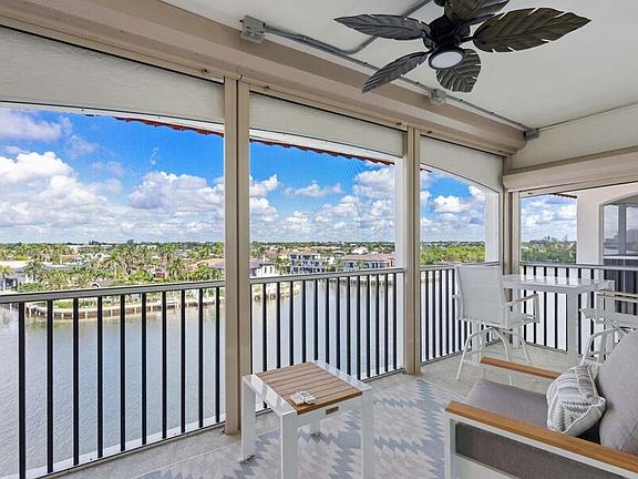This fully furnished penthouse condo includes a deeded parking garage with a Tesla charger installed. Enjoy gorgeous ocean and direct intracoastal water views from every room, overlooking breathtaking multimillion-dollar estates. The property is within walking distance to the beach and features remodeled bathrooms completed in 2022. It is equipped with hurricane impact windows and doors, custom plantation shutters, and a completely renovated open-concept floor plan. The kitchen boasts 100% wood custom cabinets, upgraded stainless steel appliances, and a designer range hood. Additional highlights include recessed dimmable lighting and motorized hurricane shades. The spectacular new marina features a new seawall and boat slips accommodating vessels up to forty feet. This stunning property encompasses thirteen and a half acres of beautifully landscaped waterfront and private beachfront, along with a newly renovated clubhouse and facilities. COURTESY OF Partnership Realty Inc.