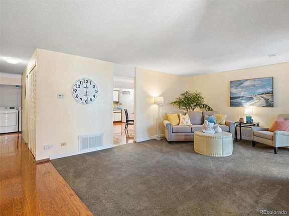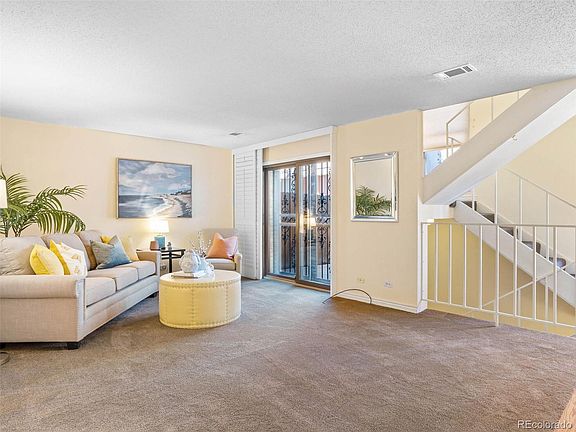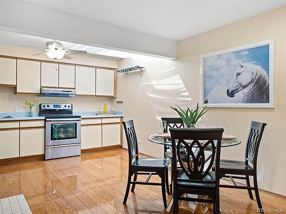 In an unbeatable Holly Hills location, this two-story townhome offers all the space you need for convenience and comfort. Inside, the main floor’s living spaces flow together for easy living, centered around the spacious living room and generous kitchen and dining area. Featuring ample prep and storage space and stainless-steel appliances, it’s a great spot to cook your favorite meals and then enjoy them in the eat-in area, highlighted by a woodburning fireplace. A large skylight provides great natural light to the room. When the weather is nice, spend time outside on the private, gated patio where a beautiful vine blooms in the summer. Upstairs, both bedrooms are sizable with walk-in closets, while the large primary bedroom features a bonus nook, perfect for an office area or dressing room. The full bathroom is attached to the primary suite and shared by both bedrooms. On the main level, there’s a powder bath and in-unit laundry, with the washer and dryer included. Downstairs, the basement accesses your two parking spots, conveniently located in the secured, underground garage. The shared garage is attached and features extra storage. Enjoy simple living and great value from the community association, which includes a community pool and covers services including water, sewer, and trash, garage and common area maintenance, and exterior building maintenance with roof. You can’t beat the central location for commuting to downtown Denver or DTC, with quick access to I-25 or the Light Rail. Plus, there’s tons of nearby amenities. Welcome home to low-maintenance living!