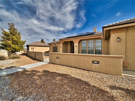 Stunning Estate w/Luxury Casita & Paid-in-full Solar on this breathtaking property w/views of Mt Charleston Mountain Range from the back yard w/large covered patio. Main Home is 2938sf & Casita is 572sf. Total sf of 3510. Designed for comfort & functionality, this fully fenced & cross-fenced property offers privacy & high-end upgrades throughout. Main home features 3 beds w/walk-in closets, a large den, & 12-ft ceilings. A wood-burning fireplace & spacious living room, gourmet kitchen boasts stainless steel appliances, a built-in oven, microwave, custom paint, & prem flooring. Oversized Laundry Rm Sink, upper-lower & storage cabinetry. Primary Ste has dble French doors to the patio & an en-suite bath. 2 heat pumps+1 on the Casita. Double automatic RV gate, 3-car garage w/EV hook-ups & sep dog run. Luxury casita offers a private bedroom, full bath, kitchenette, & separate entrance—ideal for guests or rental income. Pine Trees, auto irrigation, Prof Pictures will be uploaded 020425