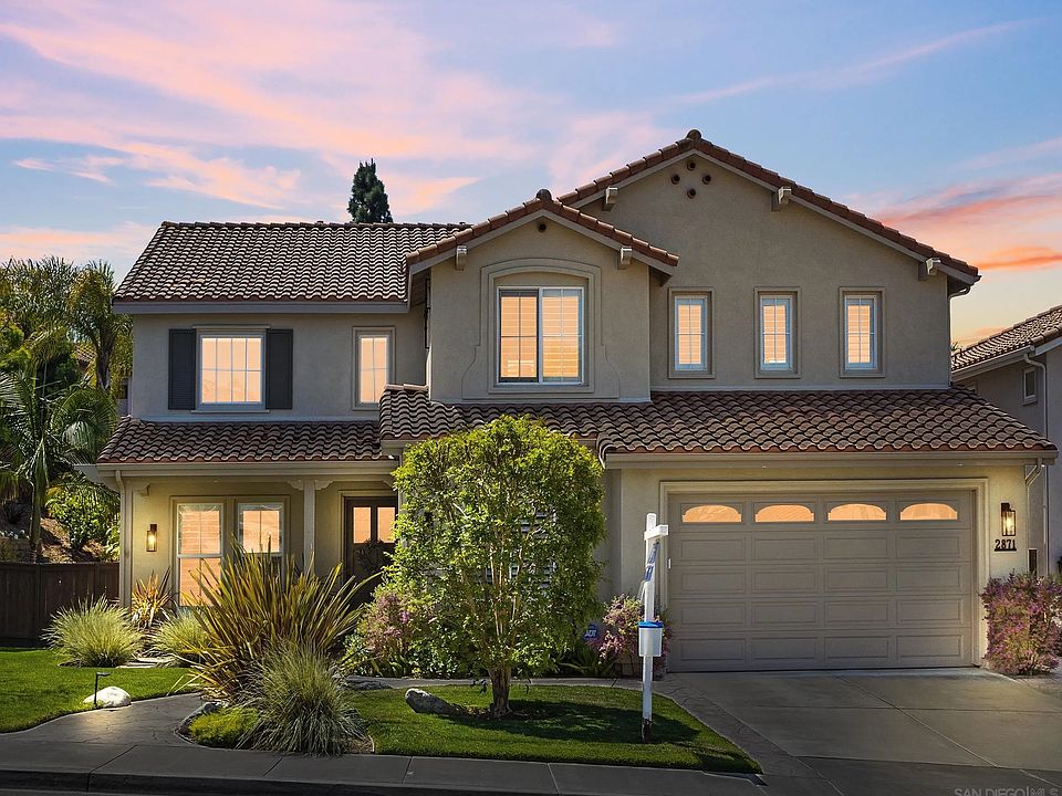 Welcome to this elegant home located in the highly coveted La Costa Valley! Enjoy extensive upgrades inside and out with 5 bedrooms,(full bed & bath downstairs), 3 baths plus a converted huge laundry/storage room with cabinets & quartz countertops! Remodeled entertainers' kitchen with newer cabinets, quartz countertops and island, pendant lighting, all GE SS appliances, wine fridge and farm house sink. Designer touches abound with luxury vinyl plank flooring & carpet, new shutters & dual pane windows. New exterior and interior neutral paint and baseboards.Owned solar panels, BBQ, spa w/waterfall, 2 pergolas, new landscaping, perimeter fencing & lights!Master bed plus retreat and walk-in closet with huge spa-like bathroom with dual vanities & soaking tub! Nearby shopping, restaurants, parks and freeways with membership to La Costa Valley Club!
