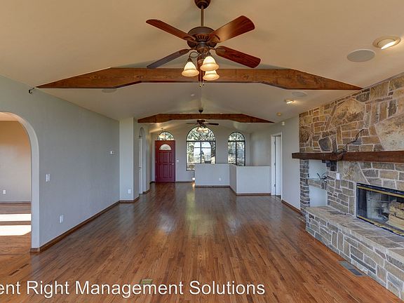 Panoramic views from this custom home in The Ranch! - This 2,875 sq home features incredible panoramic views! Enter the main level into a bright open living room with wood floors, beamed ceilings, wood burning fireplace and incredible views. The kitchen features granite counters, pantry cabinets, stainless steel appliances, breakfast nook and connects to the formal dining room. There are two fantastic outdoor entertaining areas off the kitchen and dining room with a grill. Also on this level is the master suite which has a large bedroom with gas fireplace and private deck, master bathroom with dual vanity sink, jetted tub, separate shower and throne room. For guests there is a half bath. On the lower level is another large living room with wet bar and wood burning fireplace. There are two guest bedrooms, one with a private patio and a full guest bath. There is a laundry room, storage and access to the oversized two car garage. This home is situated on 0.48 of an acre which has mature trees, plenty of outdoor living spaces and incredible panoramic views! HOA: Ranch at Prescott Phase 4 HOA Rules and CC&R's apply. Heating: Forced gas. Cooling: Central AC and ceiling fans. Appliances include: refrigerator, gas cooktop, wall oven with warming tray, built in microwave, disposal, dishwasher and washer and dryer (units are included). Utilities: Tenant Pays. Electric - APS. Natural Gas - Unisource. Water, Sewer, Trash - City of Prescott. Terms: No smoking. Pet Policy: Pets negotiable (2 max, no dangerous breeds). No college students. Year lease. 2% City of Prescott tax will be added to rent. Renters insurance is required. There are insurance restrictions on trampolines and dangerous breeds of dog. Move In Costs: $35 application fee (per person 18 and over). $100 administrative fee. $250 carpet cleaning fee. Deposit may be equivalent to one month's rent, but may be up to 1.5 times one month's rent. Rent and/or prorated rent. Information is deemed to be reliable, but is not guaranteed. Call Rent Right today at 928-771-0308 to schedule a showing. No Cats Allowed (RLNE2684577)