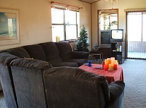 Relax in this spacious 2 bdrm home with huge screened deck and large country kitchen that opens to the living room. Within walking distance to the lake with easy access from Hwy 86, yet far enough back to be quiet %26 peaceful. 26x32 detached garage with utility sink could do double duty as a gardening shed or workshop with lots of room for the cars %26 toys. Lot is mostly level with no restrictions, so there%27s room to park your RV or boat and still have a great garden. Established, friendly neighborhood with nearby homes also on extra large lots.