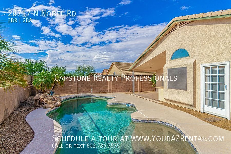 This stunning home is an entertainer's dream! Featuring a bright and open floor plan with vaulted ceilings, neutral flooring, and a cozy fireplace, this residence offers the perfect blend of comfort and style. The gourmet kitchen is a chef's delight, boasting a large island with a gas cooking stove, built-in microwave, dishwasher, and walk-in butler pantries for ample storage. The spacious master suite is a true retreat, complete with a sitting area/office and direct access to the outdoor oasis. Outdoor Living at its Finest: Relax and unwind on the tiled patio while taking in breathtaking mountain views. Cool off in the sparkling pebble tec play pool complete with a waterfall feature. Convenience & Location: Close to hiking trails Easy access to freeways Monthly landscaping and weekly pool service included (tenant responsible for in-between maintenance) Don't miss out on this incredible opportunity! Note: Pool fence not pictured. What are you waiting for? This house won't last long! Monthly Resident Benefit Package: $49.99 Security Deposit: Equal to one months rent Refundable Cleaning Deposit: $275.00 Refundable Pet Deposit: $200.00 per pet 2 Car Garage Built In Shelving Dryer Gas Cook Stove Kitchen Island Pool Service Included Washer Washer Included; Dryer Included