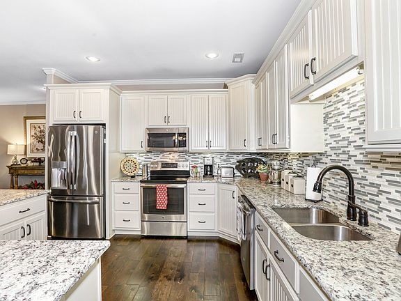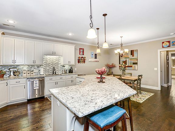 This gorgeous 3 Bedroom, 2 Bath Townhome is in the beautiful Olde Cobblestone Community'. Well appointed with 7 inch hardwood hand-scraped floors throughout, tiled shower in the Master Bath, Open floor plan with 1854 square feet. Plantation Shutters, refrigerator, washer and dryer and wall mounted 42 inch TV stay with the home. The kitchen has granite countertops with oversized peninsula that is perfect for entertaining. Adorable patio is perfect for enjoying your evenings. Patio furniture and fountain stay with home as well. There is an attached 2 car garage with covered walkway. This home has it all. There is a green space with a creek directly across from your front door.